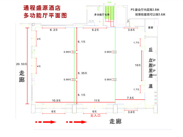 会议厅面积 590㎡ 可容纳600人 市场参考价¥8000.00(价格有浮动,请以酒店销售报价为准)
