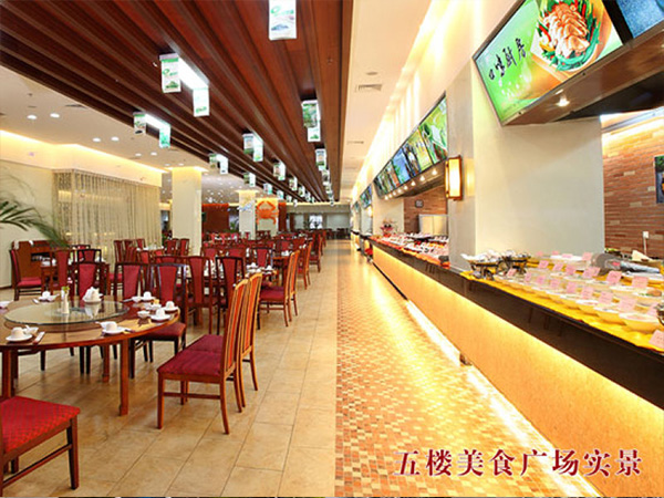 同时,酒店拥有面积超600平方米的美食街,为客人提供各种风味的精美菜品,更有早中晚专家营养美食。风格独特的自助式中西餐厅主营煎、烤、炸、扒、烩等各式食品。13间中餐包厢装修风格雅致华贵,由正宗湘粤名厨主理,荟萃东方美食。
